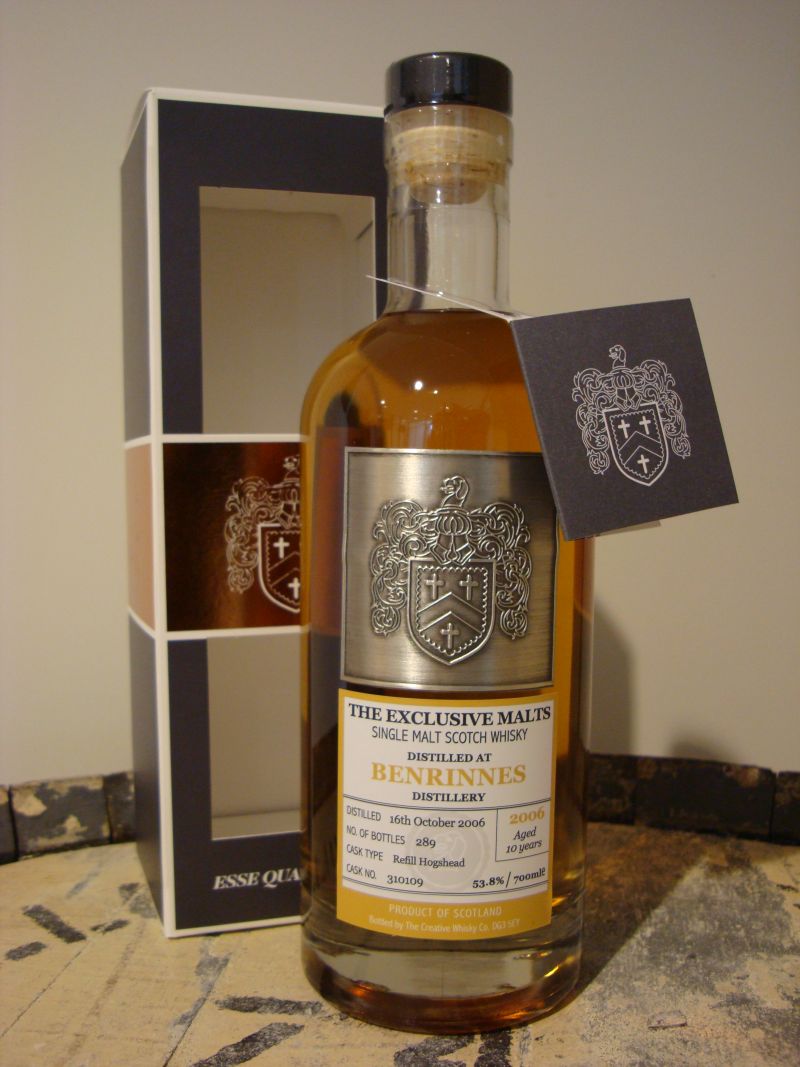 - Creative Whisky Company Exclusive Malts Benrinnes 2006 10YO; Appeltjes en peren in de neus en verder een geweldige Whisky.