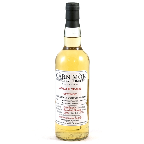 - Morrison & MacKay Whisky Càrn Mòr Strictly Limited Glenburgie 2011 5YO; Mooie kleur, fijne smaak en een hele goede Whisky.