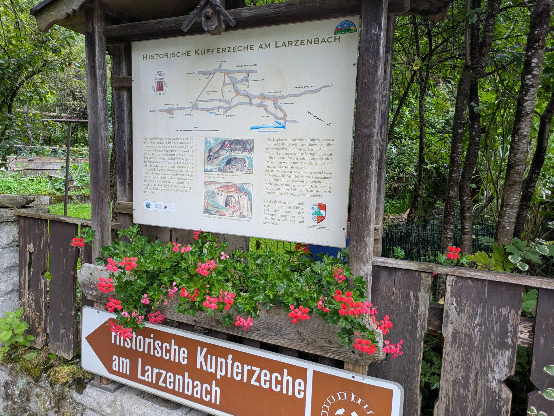 - Het bord voor een oude kopermijn