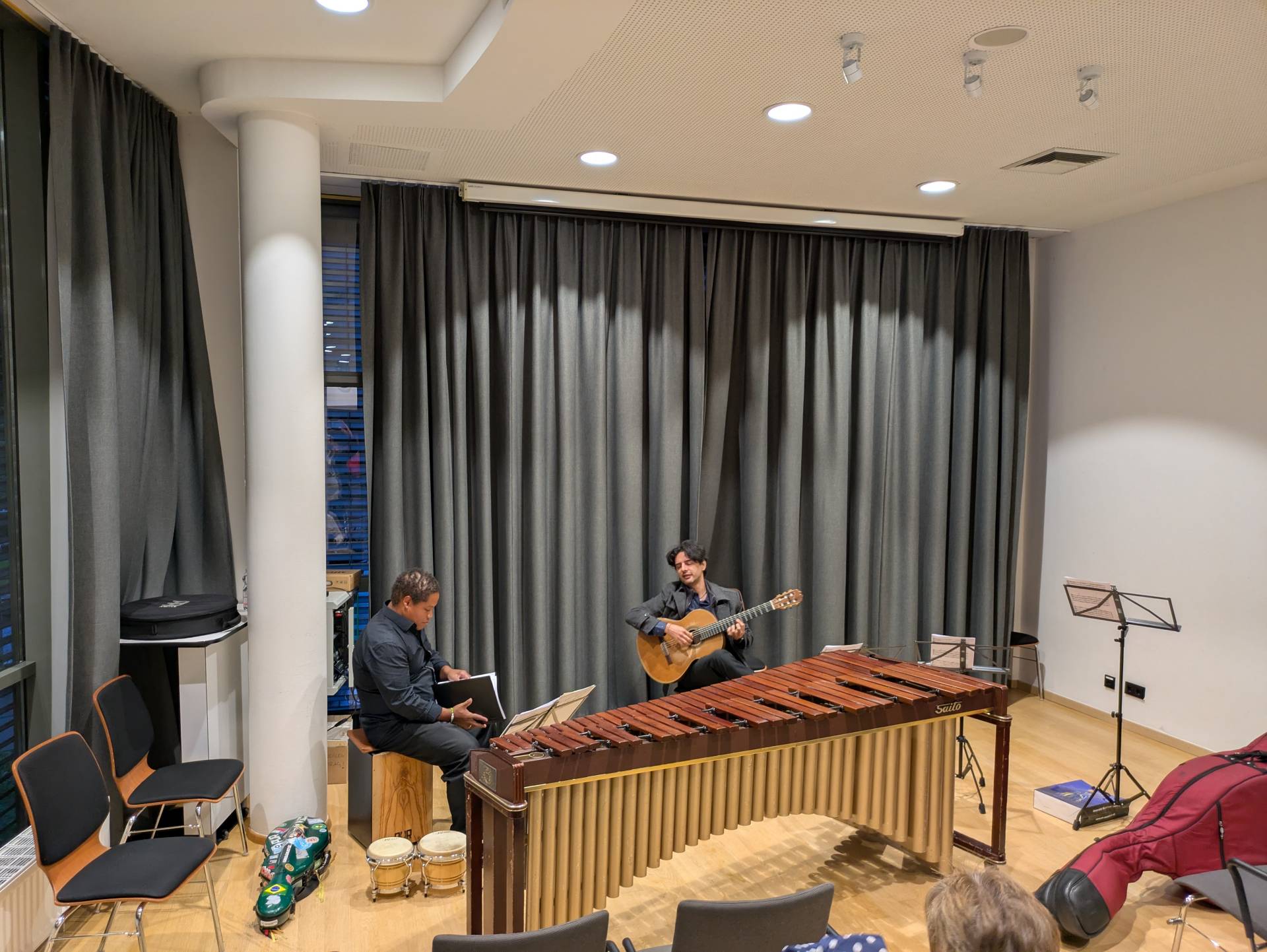 - Twee musici bereiden een concert voor