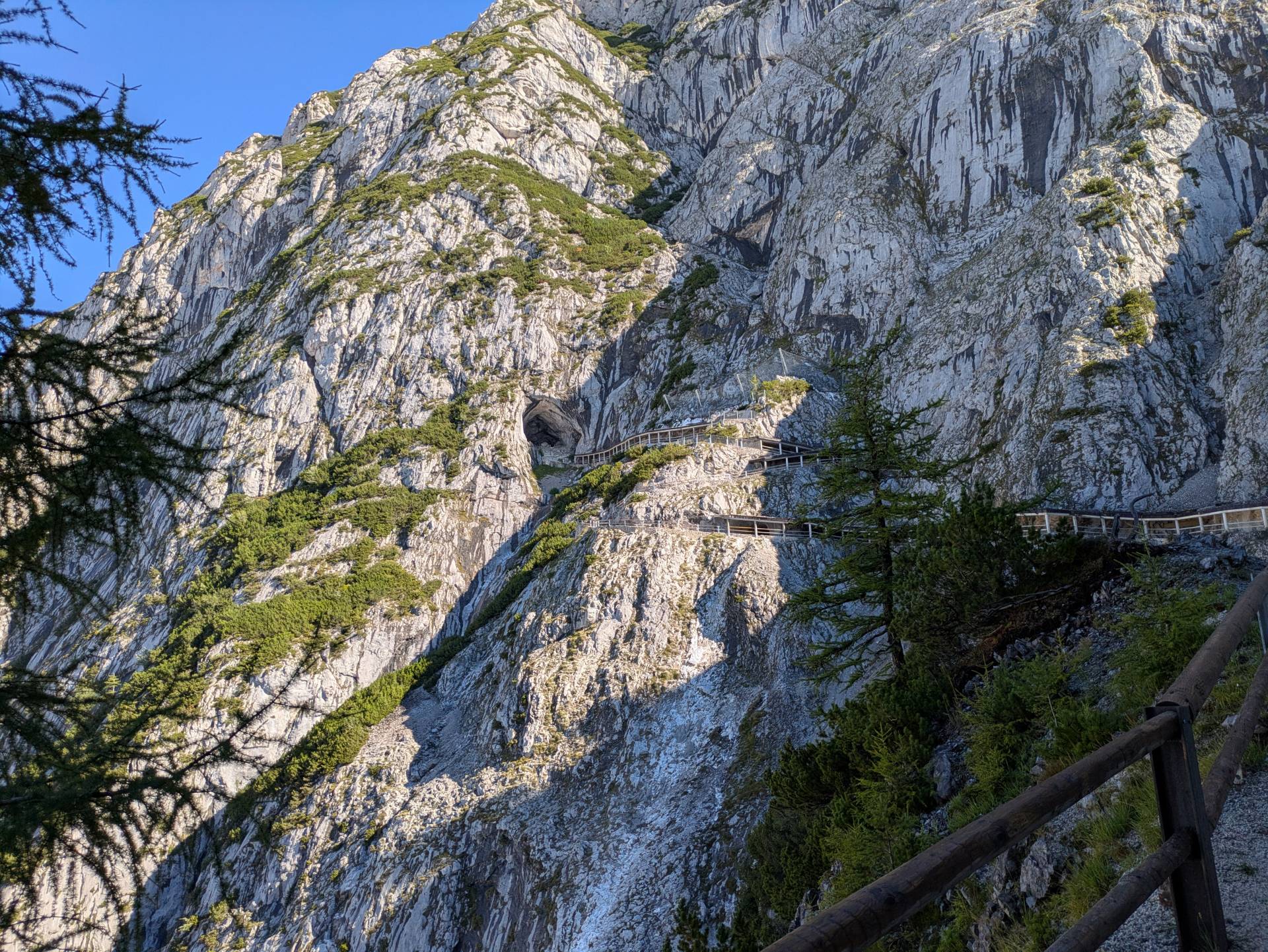 - Het pad naar en de ingang van de ijsgrot Eisriesenwelt